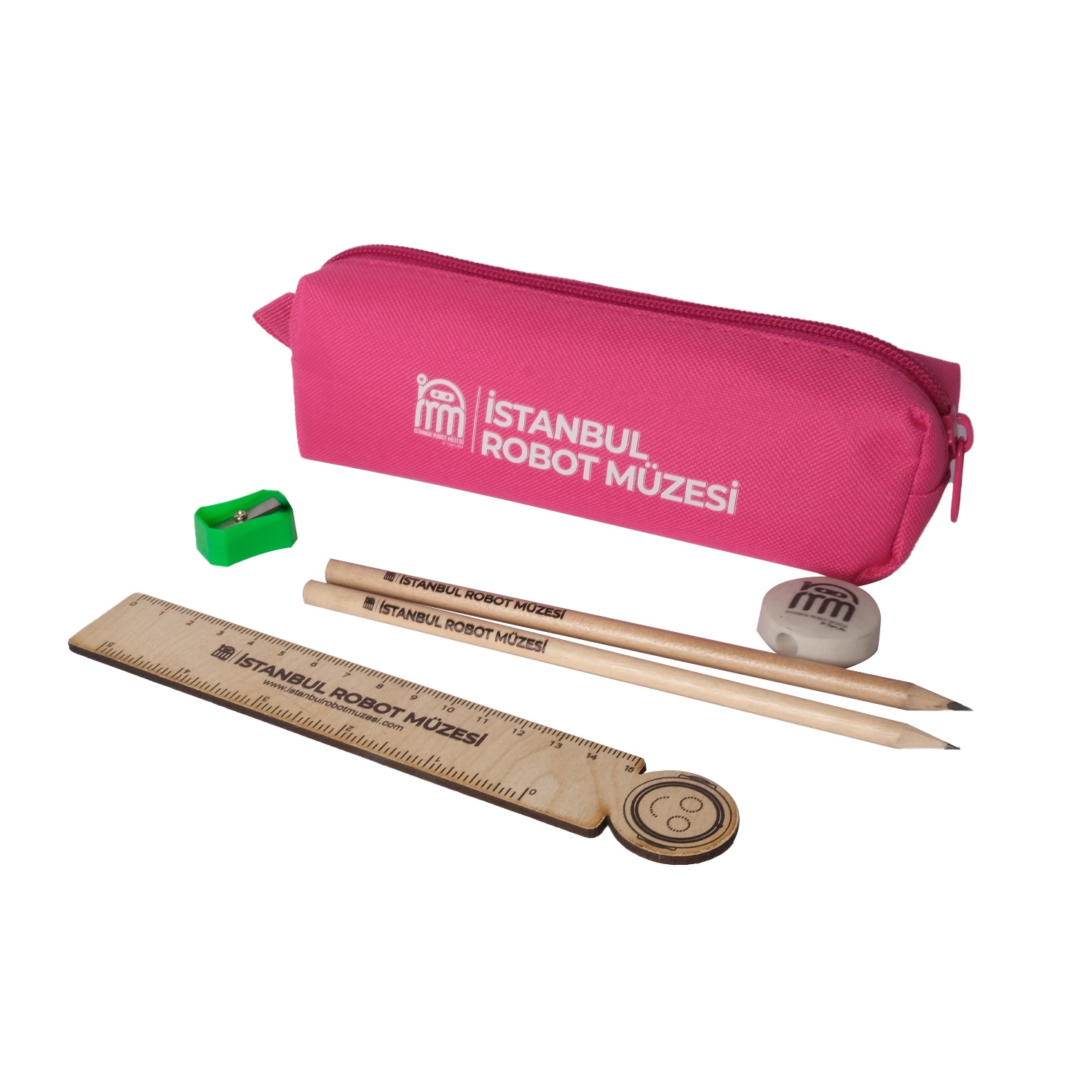 Set İçeriği: -1 Adet Kumaş Kalemlik (pembe) -2 Adet Kurşun Kalem (natural) -1 Adet Kalemtraş (farklı renklerde olabilir) -1 Adet Emoji Silgi (farklı renklerde olabilir) -1 Adet Ahşap Cetvel